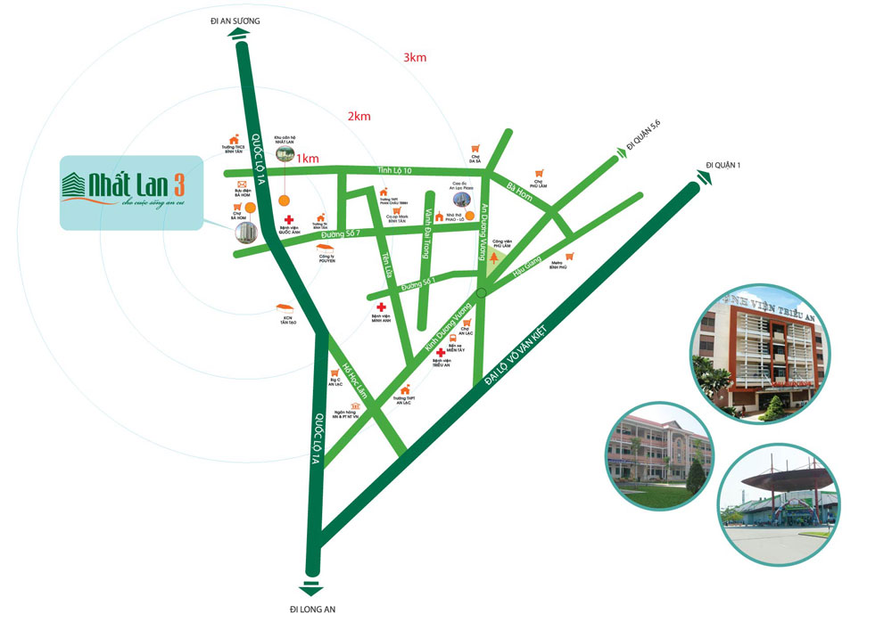 Từ căn hộ chung cư Nhất Lan 3 có thể dễ dàng đi vào ngay trung tâm Quận 1 qua đường Kinh Dương Vương và đại lộ Đông Tây, … với thời gian chỉ khoảng 30 phút hướng về các tỉnh miền Tây bằng đường cao tốc Sài Gòn – Trung Lương.
