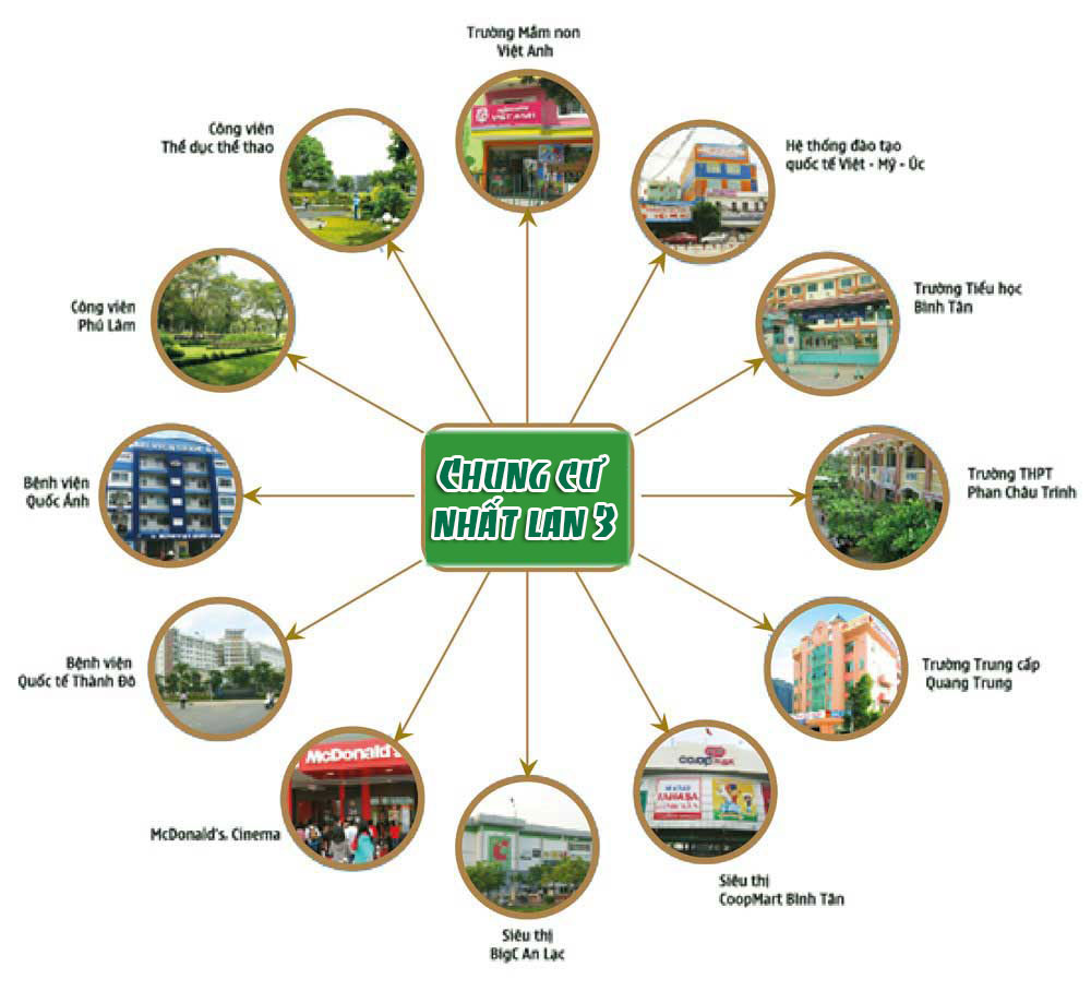 Nhất Lan 3 tọa lạc tại khu vực có hạ tầng giao thông quy hoạch hoàn chỉnh với các hầm chui, cầu vượt đã hoàn thành cùng với đầy đủ các tiện ích công cộng xung quanh như: Trường tiểu học Bình Tân, trường trung học Ngôi Sao, siêu thị Coop Mart Bình Tân, siêu thị Big C An Lạc, Chợ Bà Hom, Bến xe Miền Tây, Bệnh viện Quốc Anh, Bệnh viện Triều An,…