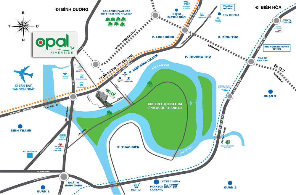 Dự án Căn hộ Opal Riverside nằm bên sông Sài Gòn, thuộc phường Hiệp Bình Phước đối diện bán đảo Thanh Đa quận Bình Thạnh( khu vực đã được quy hoạch trở thành khu “Văn hóa – thể thao – du lịch” nghỉ ngơi giải trí của toàn thành phố và đặc biệt nơi đây sẽ trở thành khu sinh thái, cảnh quan thiên nhiện hiện đại bậc nhất của TP.HCM).