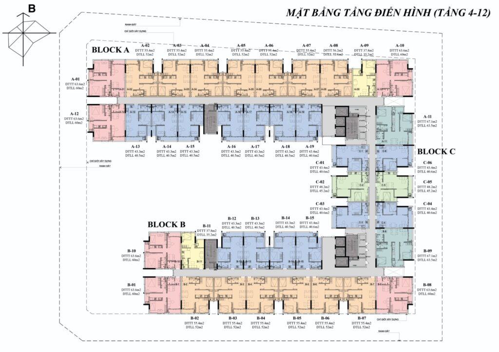 Mặt bằng căn hộ Osimi Phú Mỹ từ tầng 4-12
