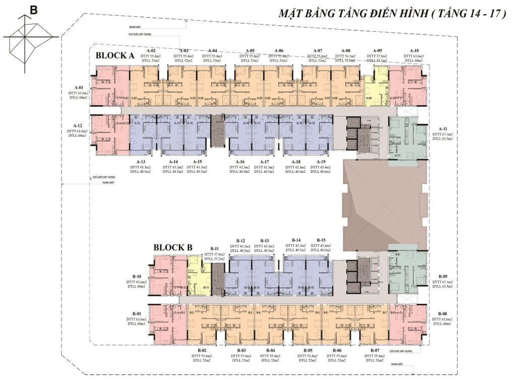 Mặt bằng căn hộ Osimi Phú Mỹ từ tầng 14-17