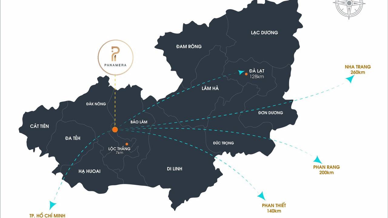 Vị trí dự án Panamera tọa lạc tại mặt tiền đường Hàm Nghi thuộc trung tâm xã Lộc Phú, Huyện Bảo Lâm, Tỉnh Lâm Đồng. Từ vị trí dự án chỉ cách trung tâm Thành phố Bảo Lộc 20 phút di chuyển bằng ô tô. Dự án có độ cao 900m so với mực nước biển nên khi hậu tại đây luôn trong lành và mát mẻ quanh năm.