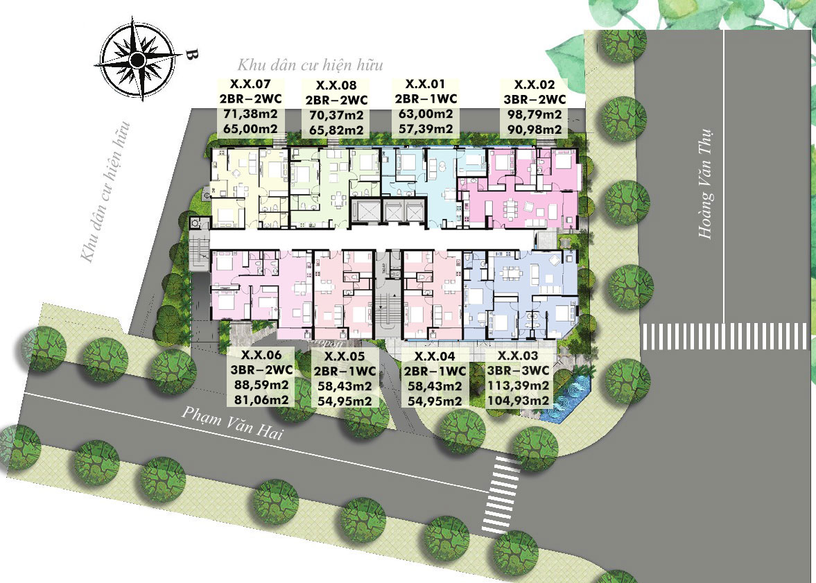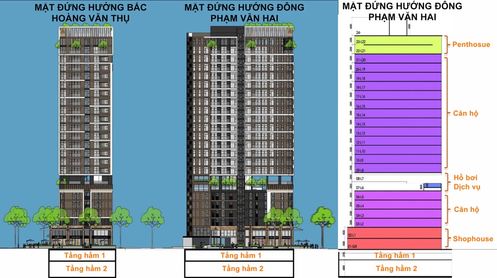 + Phía Đông Nam: Tiếp giáp với đường Phạm Văn Hai