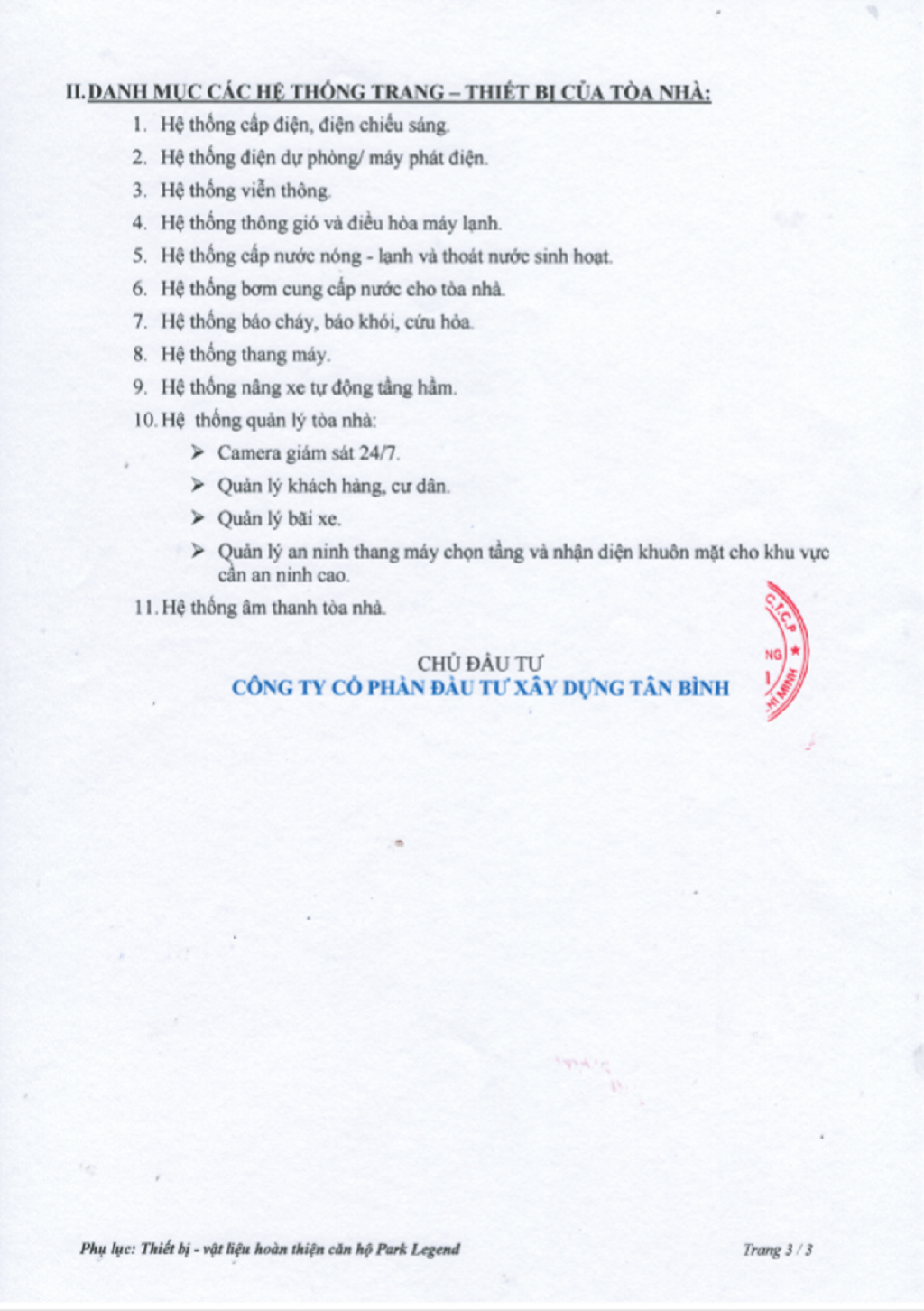 Chủ đầu tư của căn hộ Park Legend là Công ty CP Đầu tư Xây dựng Tân Bình (Tan Binh ICC).