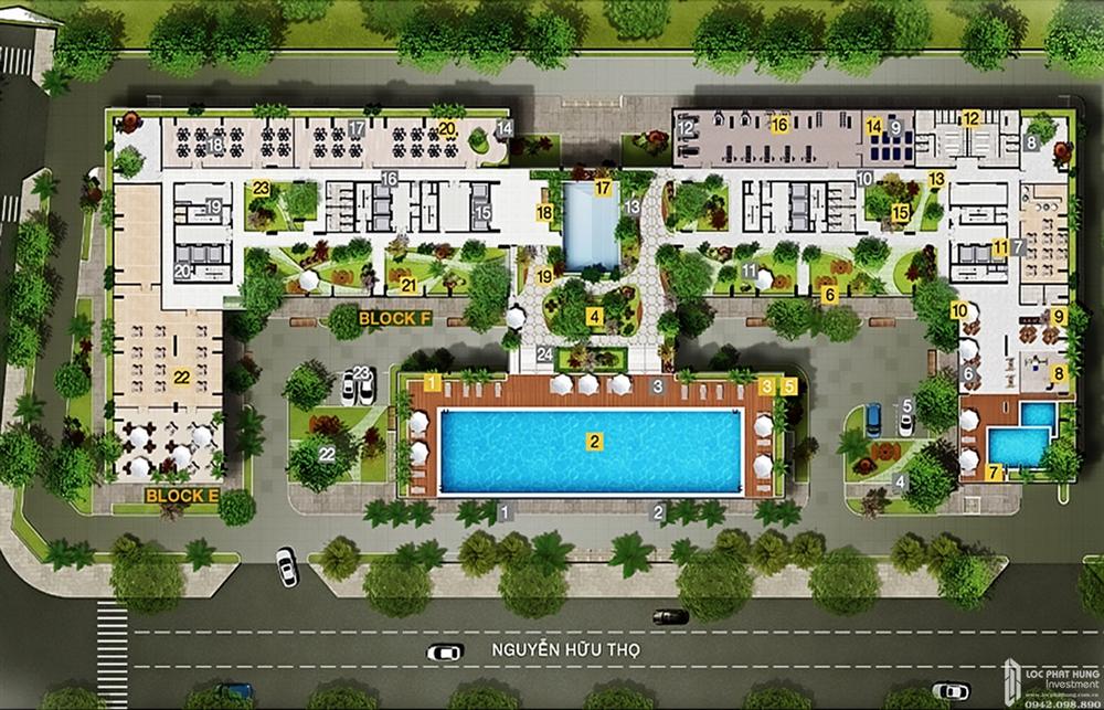 + Tầng 1,2 của dự án bố trí Trung tâm thương mại; siêu thị; shop mua bán; nhà hàng; quán coffe; khu vui chơi