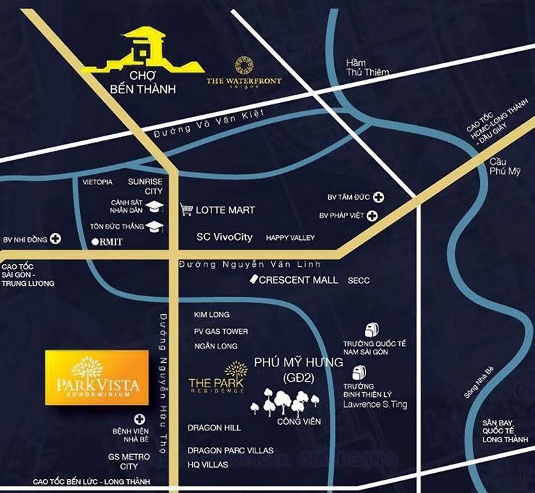 Căn hộ Park Vista có vị trí tọa lạc tại ngay mặt tiền đường Nguyễn Hữu Thọ, xã Phước Kiểng, Huyện Nhà Bè, Tp Hồ Chí Minh. Nơi đây nằm ngay liền kề khu đô thị kiểu mẫu Phú Mỹ Hưng 1; Phú Mỹ Hưng 2; Đô thị GS Metro City; Công viên Mũi Đèn Đỏ.