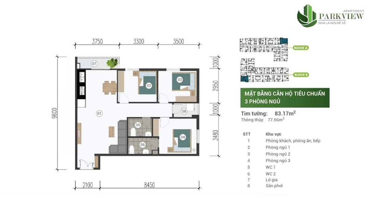 Mặt bằng Dự án Căn hộ ParkView Bình Dương được Chủ Đầu Tư thiết kế rất thông thoáng với 3 loại căn hộ chính là 1 – 2 – 3 phòng ngủ phù hợp với nhiều đối tượng khách hàng khác nhau. Bên trong mỗi căn hộ được bố trí rất thông minh nhằm mục đích tối đa không gian sử dụng cho gia chủ đồng thời lấy gió & ánh sáng tự nhiên đến mọi ngóc ngách trong căn hộ.