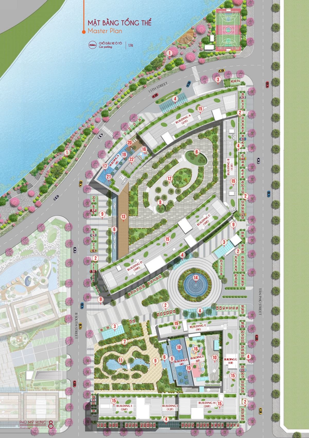 Khu phức hợp PHÚ MỸ HƯNG MIDTOWN là tổ hợp kiến trúc đa chức năng: nhà ở, thương mại, dịch vụ, giải trí, thể thao với điểm nhấn là công viên hoa anh đào SAKURA PARK lần đầu tiên có mặt tại Việt Nam, trải dài dọc bờ sông, uốn cong theo thế đất của toàn khu.