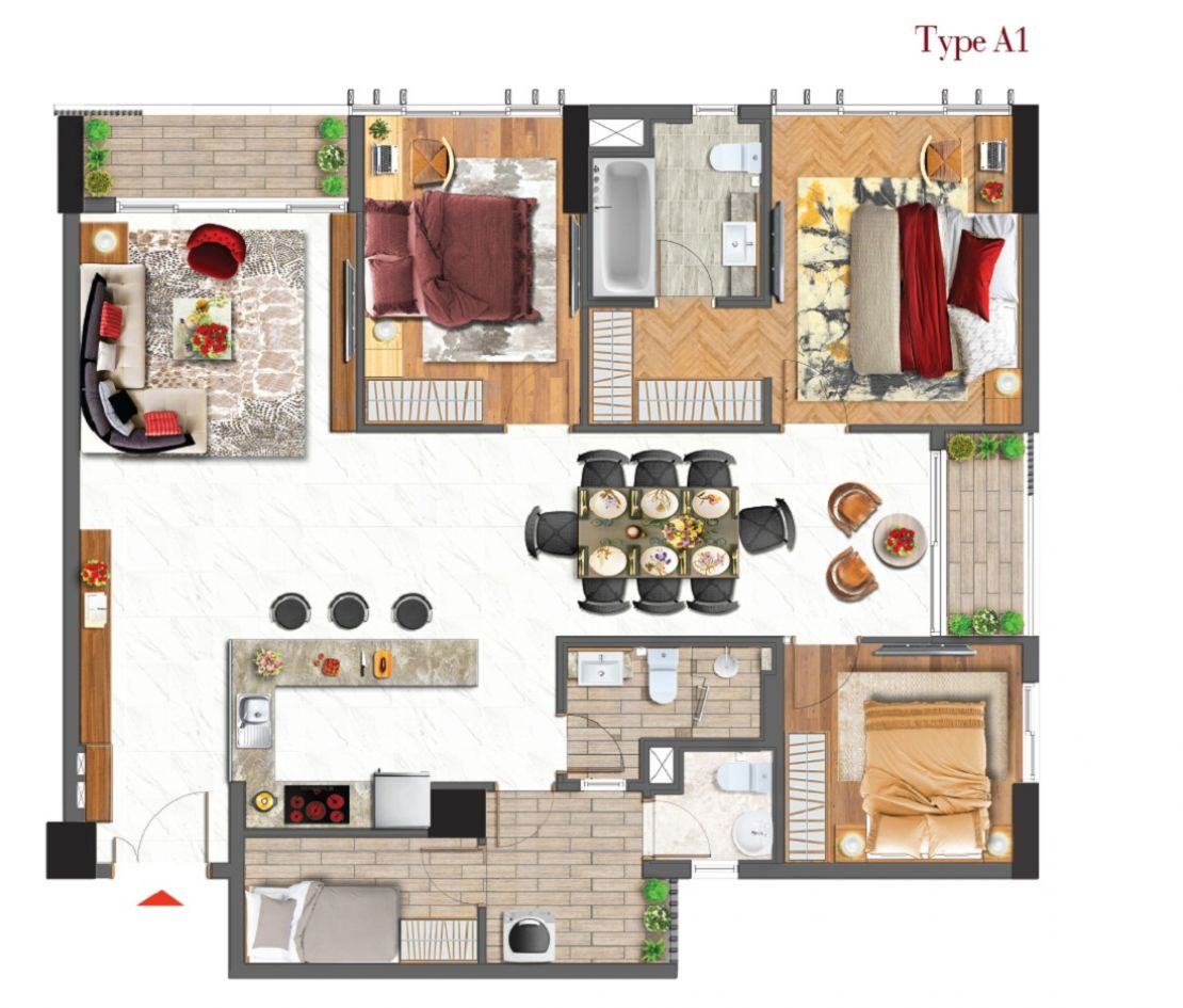 Trên khu đất rộng 56,331m2, khu phức hợp gồm 4 công trình – 4 khu căn hộ với thiết kế khác biệt, mỗi toà nhà sở hữu chuỗi tiện ích chuẩn quốc tế dành riêng cho các chủ nhân: hồ bơi, khu sauna, massage, gym, phòng đa chức năng, thư viện trẻ em… Đặc biệt, bên dưới mỗi toà nhà tích hợp hệ thống cửa hàng dịch vụ – ẩm thực cao cấp, đáp ứng đầy đủ nhu cầu của cư dân nơi đây.