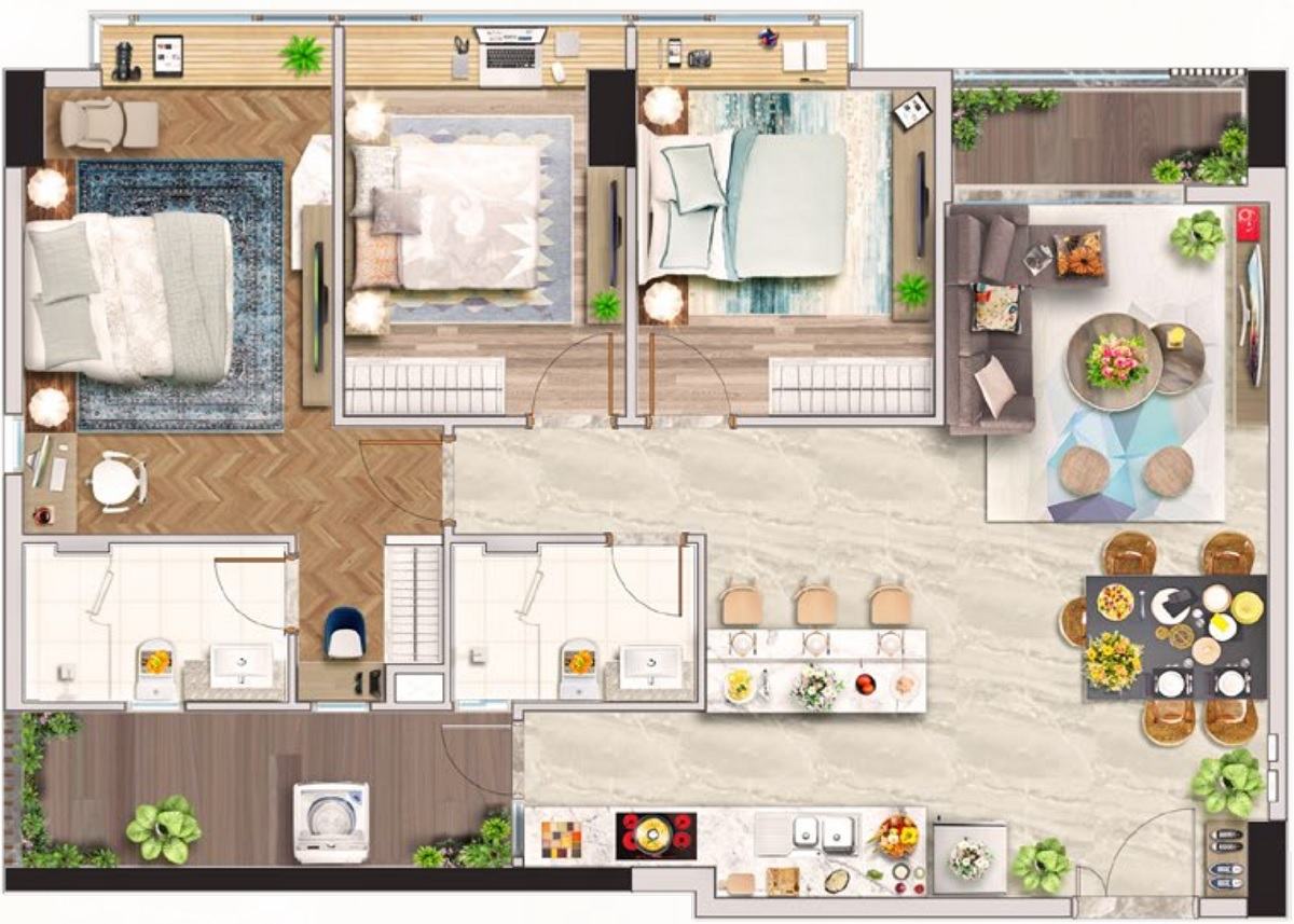 Phú Mỹ Hưng Midtown cung cấp cho khách hàng đa dạng loại hình sản phẩm với thiết kế có 2 -3 PN và căn hộ tophouse bố trí trên tầng thượng.