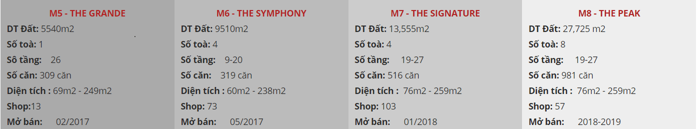 Quy mô: 4 phân khu – The Grande, The Signature, The Peak và The Symphony.