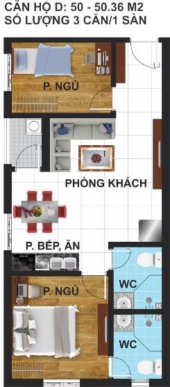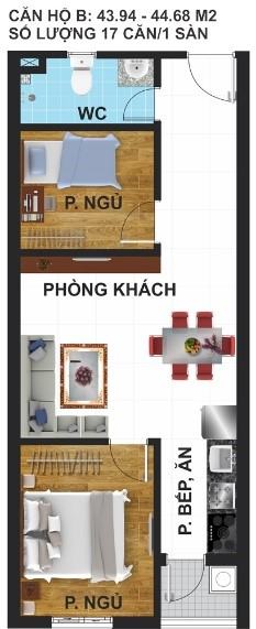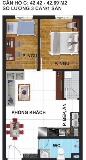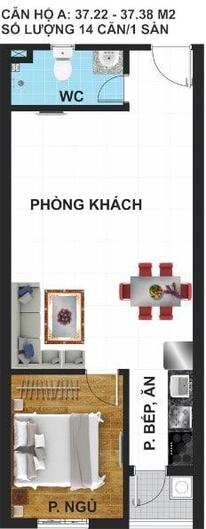 Căn hộ thông minh 1, 2 phòng ngủ và shophouse Diện tích: Từ 42m2 đến 56m2. |