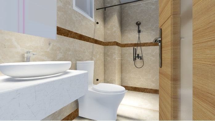 – Phòng vệ sinh hoàn thiện toàn bộ từ thiết bị vệ sinh đèn gạch ốp lát tường: Sàn lavabo, bồn cầu, vòi sen, gương, kính phòng tắm…