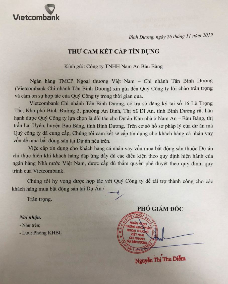 Cam kết tín dụng từ Vietcombank