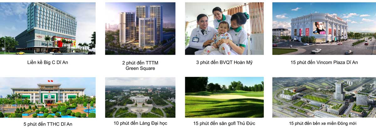 | TTTM Green Square | Làng đại học Quốc gia Tp. HCM. | KDL Suối Tiên | Sân bay Tân Sơn Nhất |