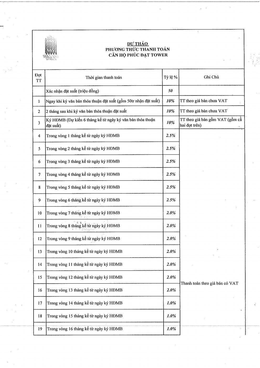 | Tên dự án | Phúc Đạt Tower |