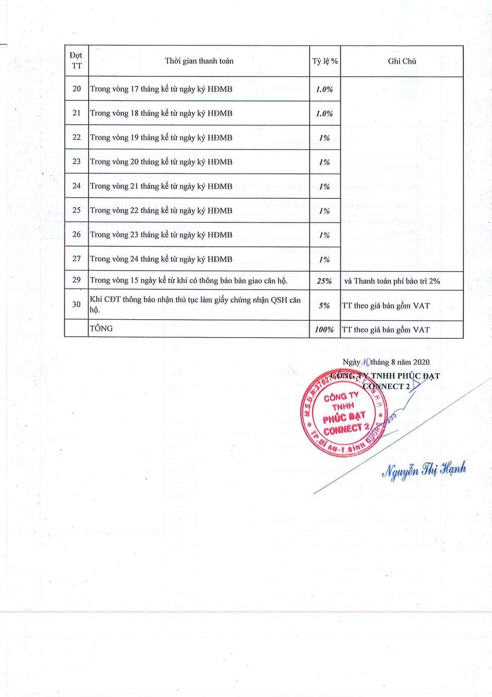 Tiến độ thanh toán dự kiến được chia nhỏ với tỷ lệ chỉ 1% – 2,5%/tháng, đợt đầu 10%.