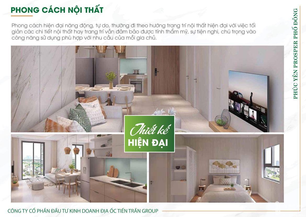 Nội thất dự án căn hộ Phúc Yên Prosper Phố Đông mang đến một luồng cảm hứng cho sự bình yên khi các nội thất được chọn lựa đơn giản, phù hợp với căn hộ đơn giản, từ các vật liệu cao cấp nhất, tạo nên sự sang trọng cho căn hộ. Mang phong cách Châu Âu hiện đại.