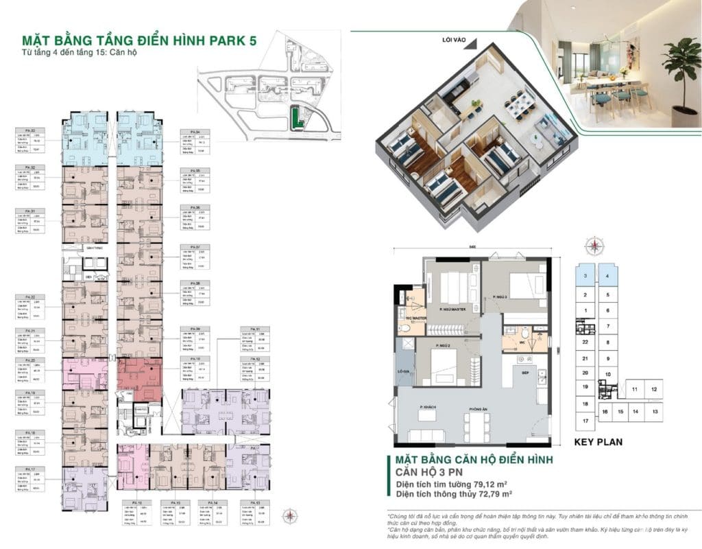 | Quy mô dự án: | 5 block với tên gọi từng tháp: Park 1 – Park 2 -Park 3 (Park 3A & Park 3B) – Park 4 – Park 5 |
