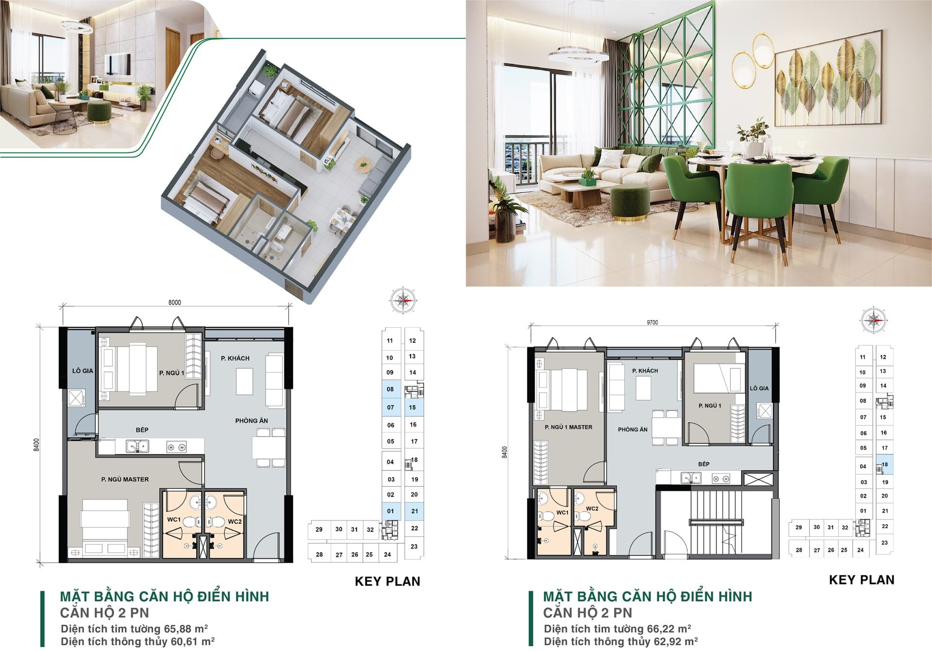 | Diện tích căn hộ từ: | 48 m2, 57 m², 65 m² và 79 m² có 1 tới 3 phòng ngủ |