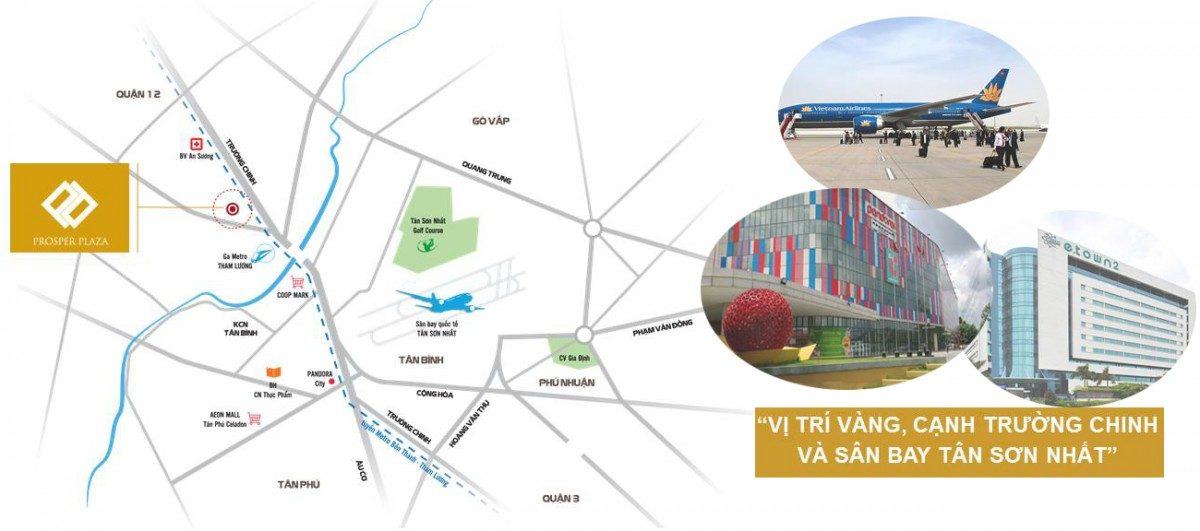 Căn hộ Prosper Plaza nằm ngày đường Phan Văn Hớn, phường Tân Thới Nhất, quận 12 nơi giao nhau huyết mạch các tuyến đường giao thông thuận lợi đi về Hóc Môn, Nam kì khởi nghĩa, Trường Chinh…