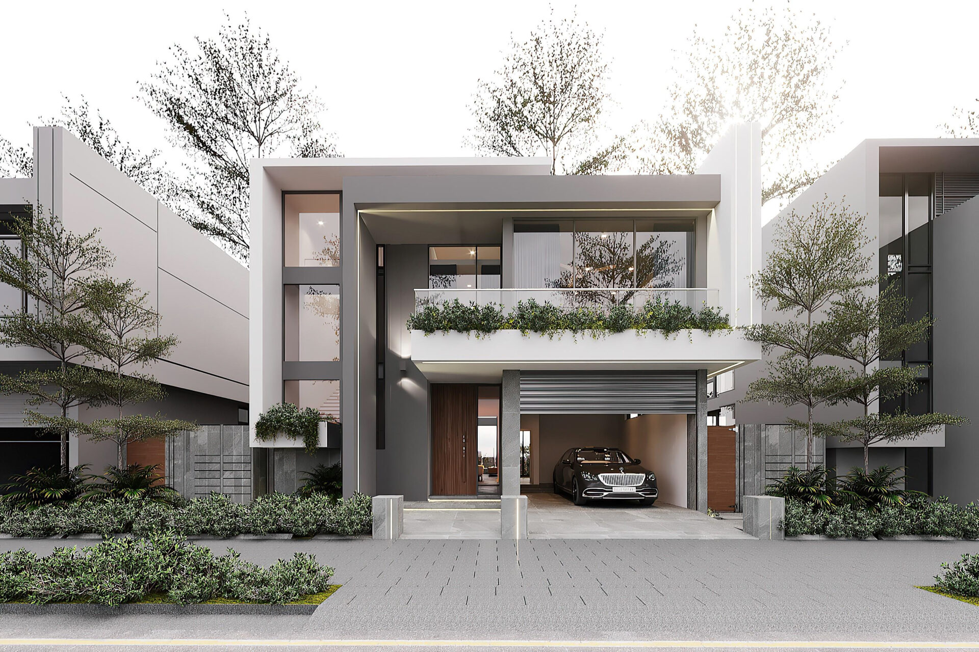 Biệt thự mẫu B – Phối cảnh mặt tiền chính diện