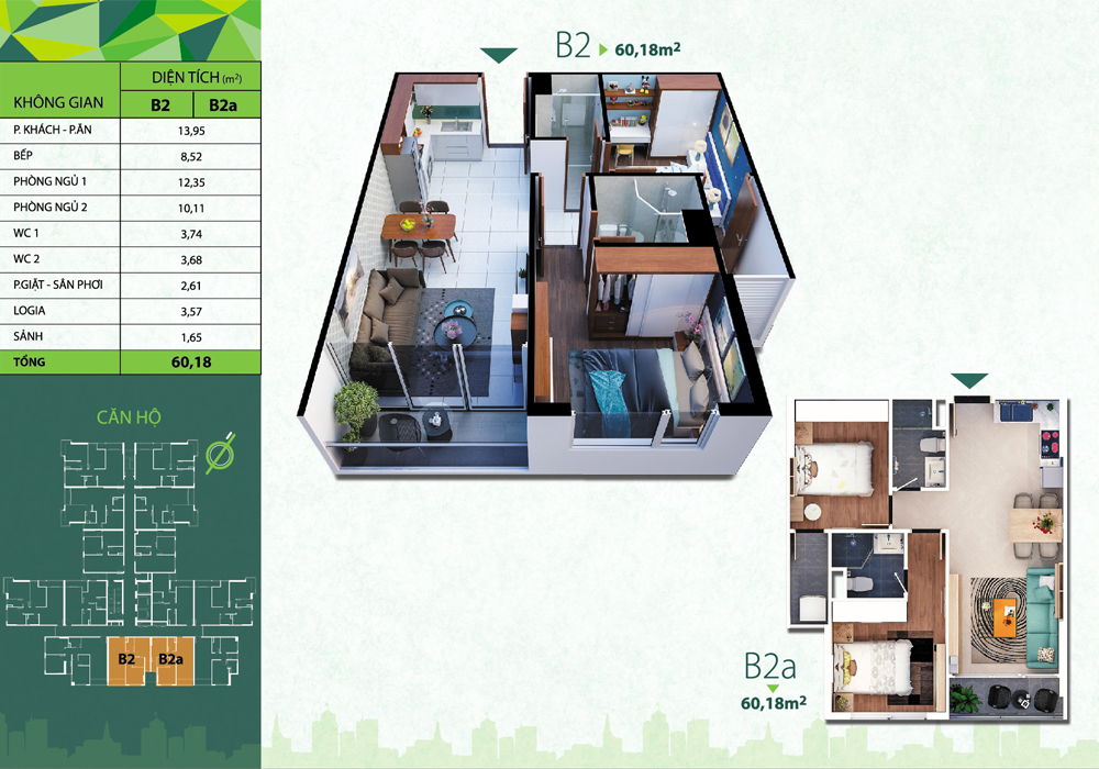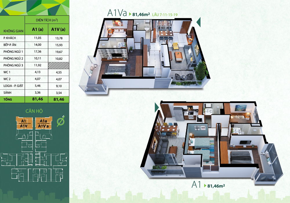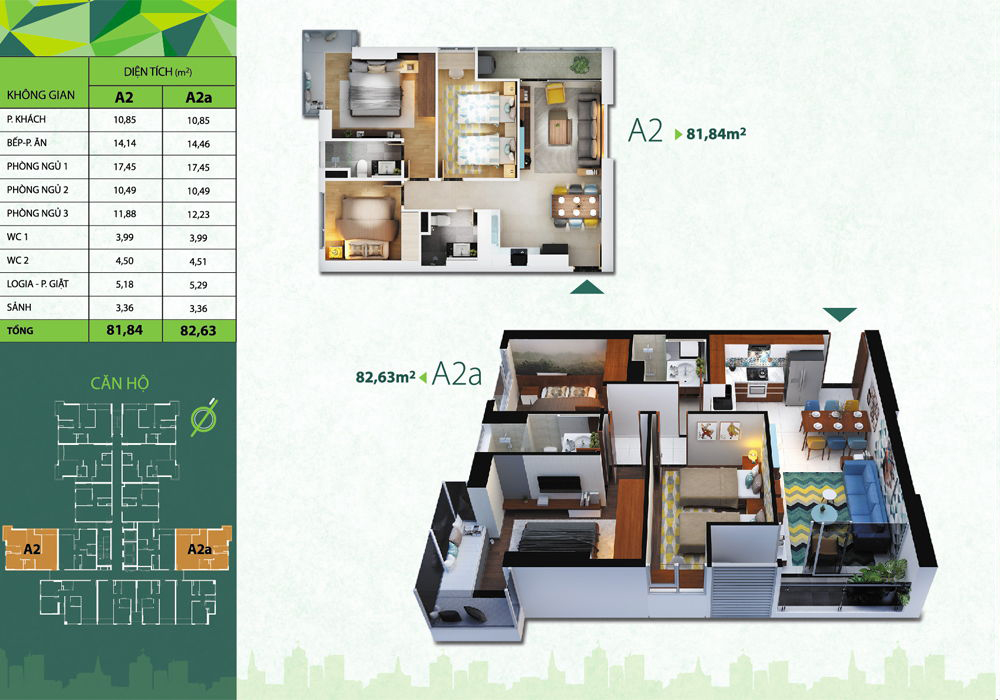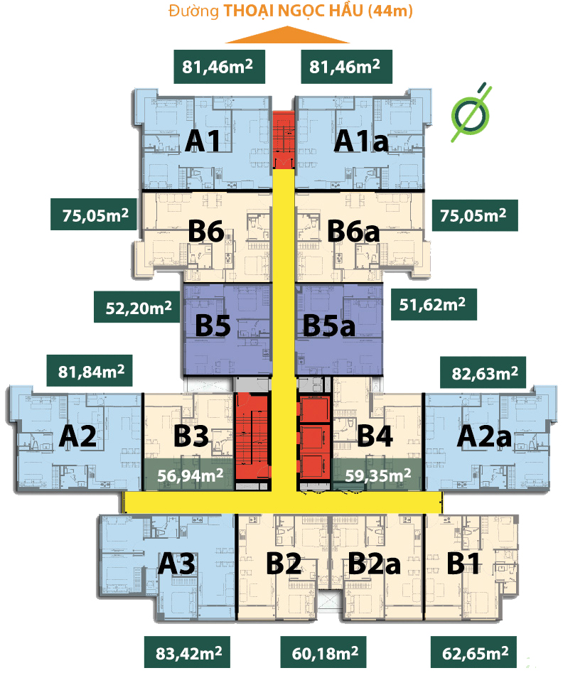 Dự án chung cư ResGreen Tower có tỷ lệ – mật độ xây dựng chỉ 21%. Phần diện tích còn lại chủ đầu tư dành để xây dựng trường học lớn 3.000m2, đường nội bộ khoảng 392,8m2 và khu vực tiện ích – không gian cây xanh phục vụ cuộc sống của người dân. Các diện tích căn hộ chung cư tại dự án được thiết kế theo nhu cầu thực dụng của người dân: – Căn 2PN 1WC: 51 – 52m2 – Căn 2PN 2WC: 56 – 81m2 – Căn 3PN 2WC: 81 – 87m2 – Penthouse (3PN 3WC): 136 – 139m2.