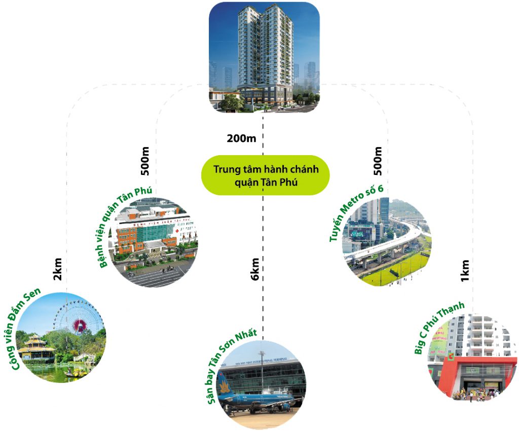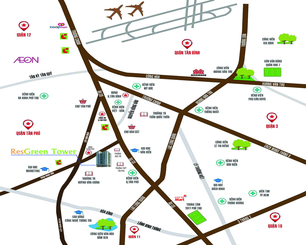 Chung cư Resgreen Tower tọa lạc tại số 7A Thoại Ngọc Hầu, phường Hòa Thạnh đây là vị trí vàng, có phạm vi giáp giới tiếp giáp theo phía Bắc là khu vực dân cư hiện hữu, phía Nam là mặt tiền đường Thoại Ngọc Hầu, phía tây hướng ra đường Âu Cơ và phía Đông hướng ra đường Lũy Bán Bích. Từ đây, cư dân dễ dàng di chuyển đến Sân bay Tân Sơn Nhất, khu du lịch Đầm Sen, kết nối Quận Tân Bình, Quận 3, Quận 5, và Quận 11,…