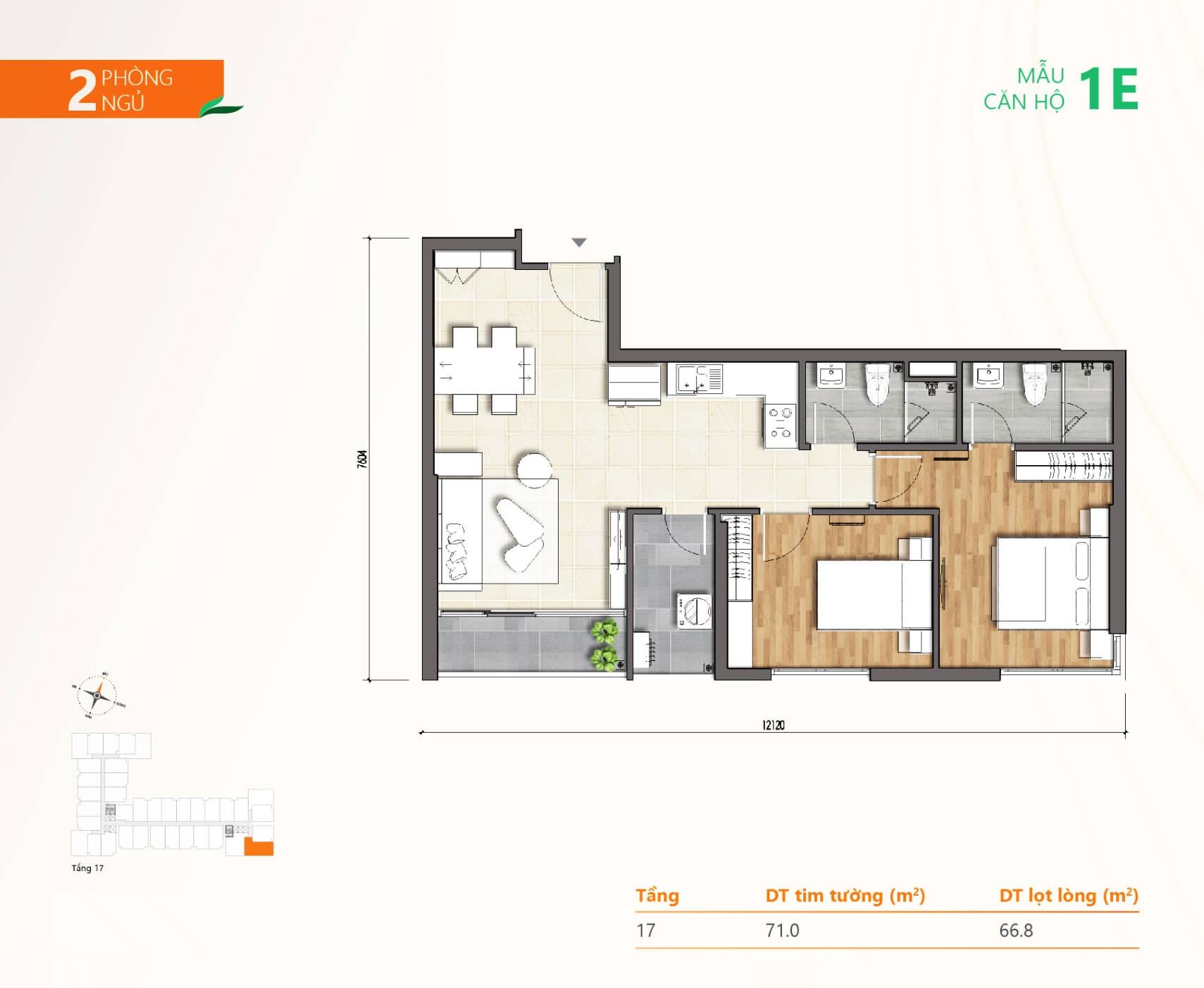 | B.xx.16 | 2PN – 2WC | 71.6m² | Đông Nam- View Sông | 2,1 – 2,3 tỷ | Đã bao gồm tất cả |