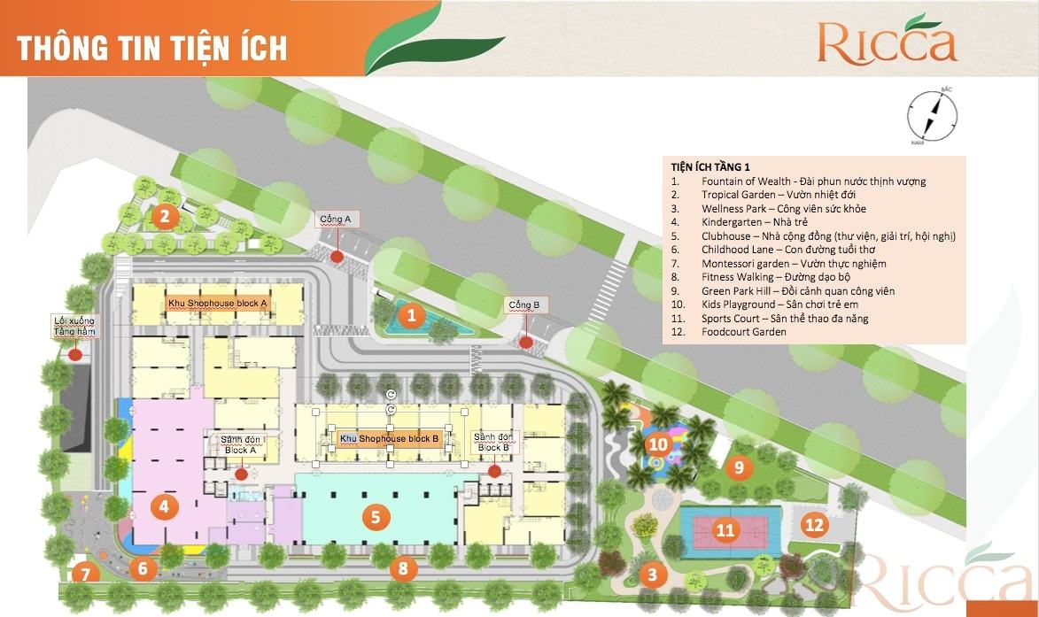 Dự án căn hộ chung cư Ricca hướng tới cuộc sống năng động, đề cao lối sống lành mạnh, Ricca đầu tư cơ sở phát triển thể chất cho trẻ em, chú trọng sức khỏe cư dân. Tập trung mảng xanh với các công viên nội khu, sân vườn riêng cho một số tầng đặc biệt và phủ xanh nhiều kiến trúc phụ trợ.