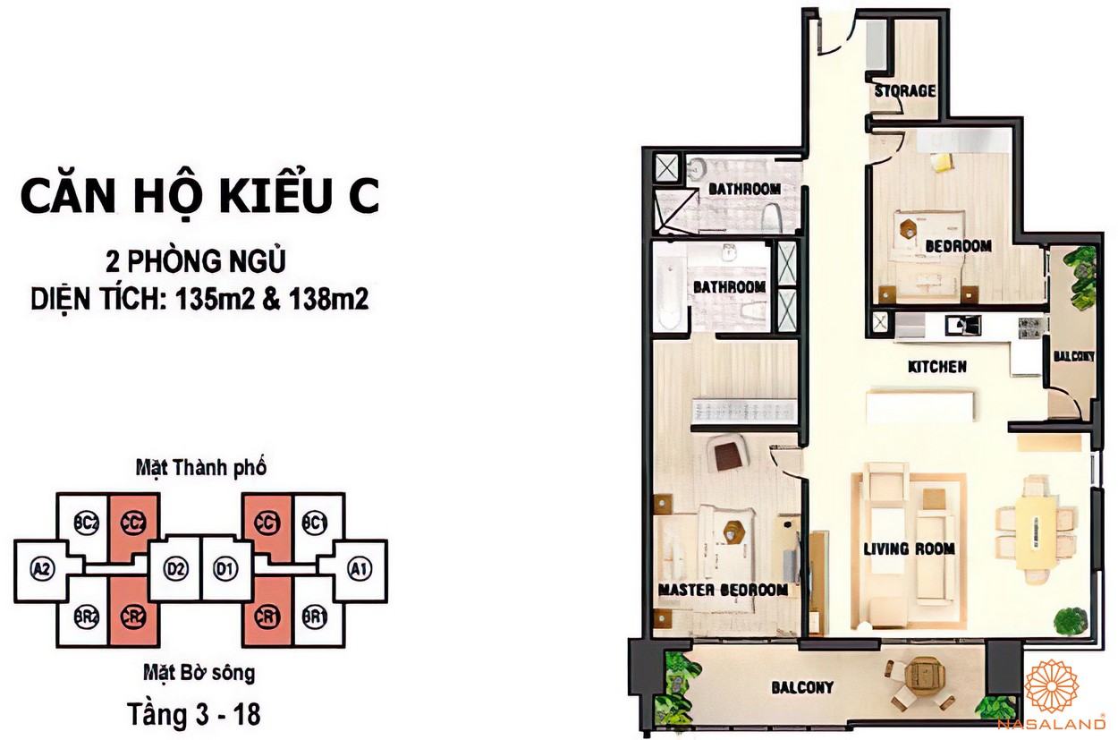 Toàn bộ dự án cung cấp các sản phẩm căn hộ cao cấp với thiết kế có từ 2 – 4 phòng ngủ có diện tích nằm trong khoảng từ 135m2 – 156m2.