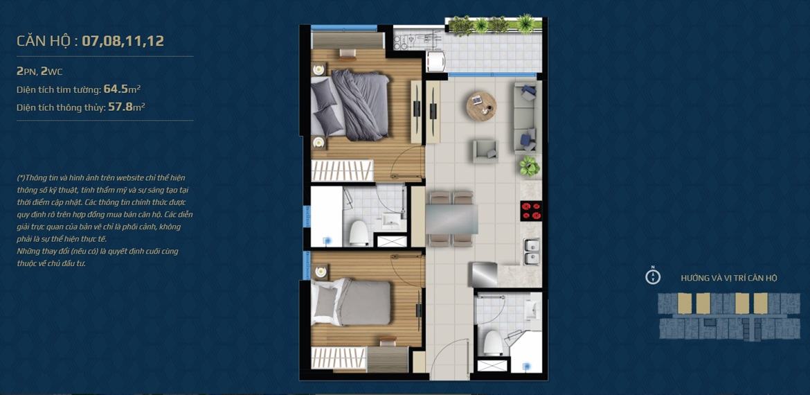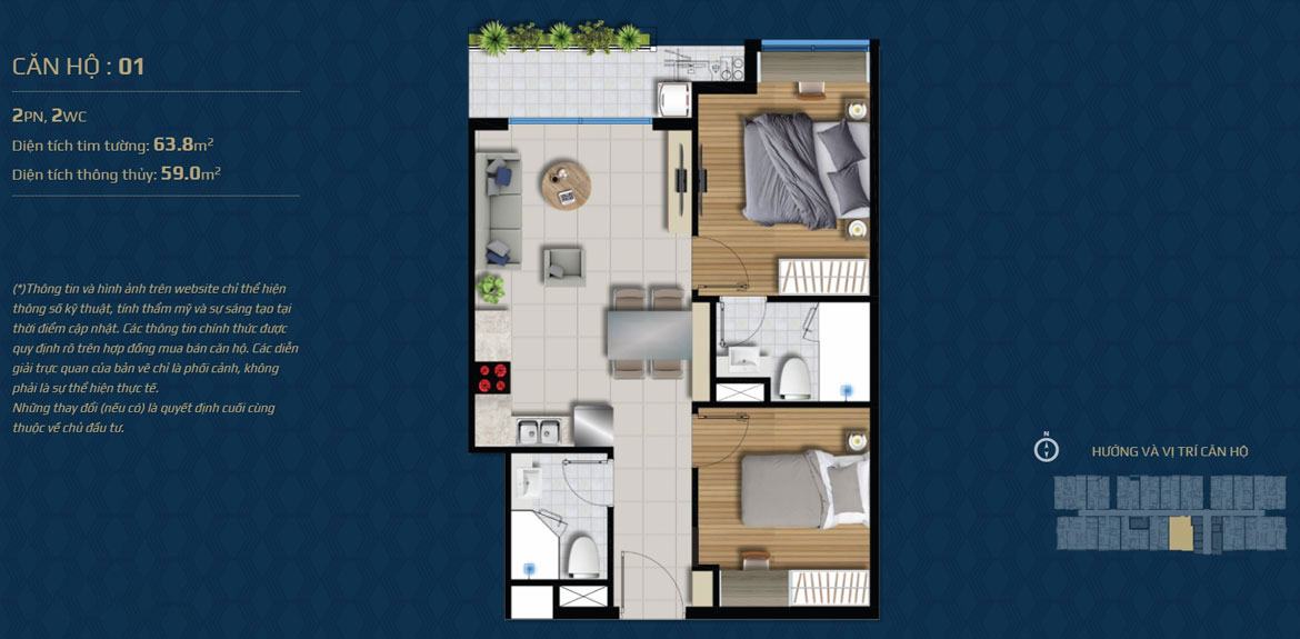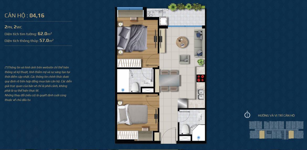 • Tổng số lượng căn hộ: 982 căn • Diện tích sản phẩm tiêu chuẩn: 55m2, 62m2, 63m2, 65m2, 90m2, 114m2 |