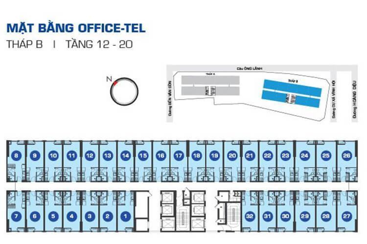 + Tháp B: từ tầng 8-21 bố trí Officetel, từ tầng 22-33 bố trí Căn hộ cao cấp
