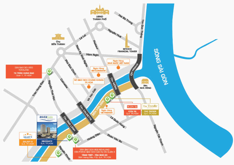 Dự án RiverGate sở hữu vị trí vàng ngay tại khu vực trung tâm thành phố, tọa lạc trên mặt tiền đường Bến Vân Đồn – tuyến đường huyết mạch song hành cùng đại lộ Võ Văn Kiệt chạy dọc theo nhánh sông Sài Gòn thơ mộng và tuyệt đẹp, hình thành nên một trong những hệ thống giao thông trọng điểm của thành phố.
