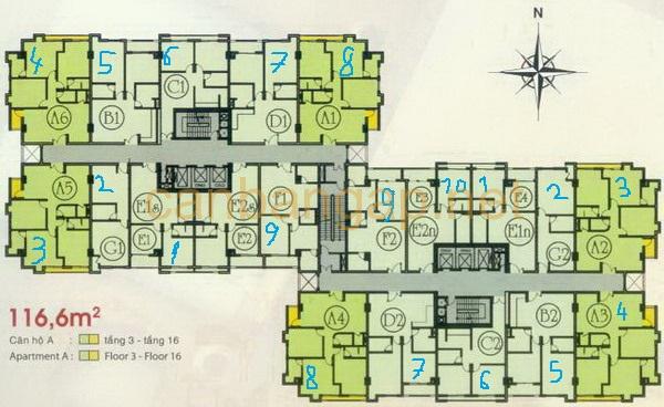 – Tầng 3 – tầng 16: Gồm 280 căn hộ cao cấp với diện tích từ 56 – 116 m2