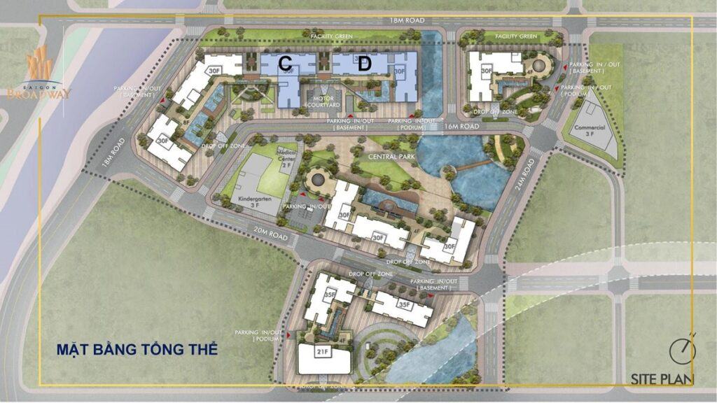 Sài Gòn Broadway được triển khai xây dựng với 12 tòa cao 25 – 28 tầng. Các tòa đều có thiết kế 1 tầng hầm làm chỗ gửi xe cho cư dân trong nội khu của dự án được thiết kế với rất nhiều các tiện ích dịch vụ và không gian dành cho cây xanh, mặt nước. Điểm nhấn lớn nhất của dự án đó chính là hệ thống hồ bơi; hồ cảnh quan giúp mang lại sự điều hòa không khí trong lành, xanh mát cho toàn cư dân. Đồng thời, dự án còn được chủ đầu tư triển khai với nhiều hạng mục tiện ích như trường học hay công viên lớn thu hút khách hàng quan tâm.