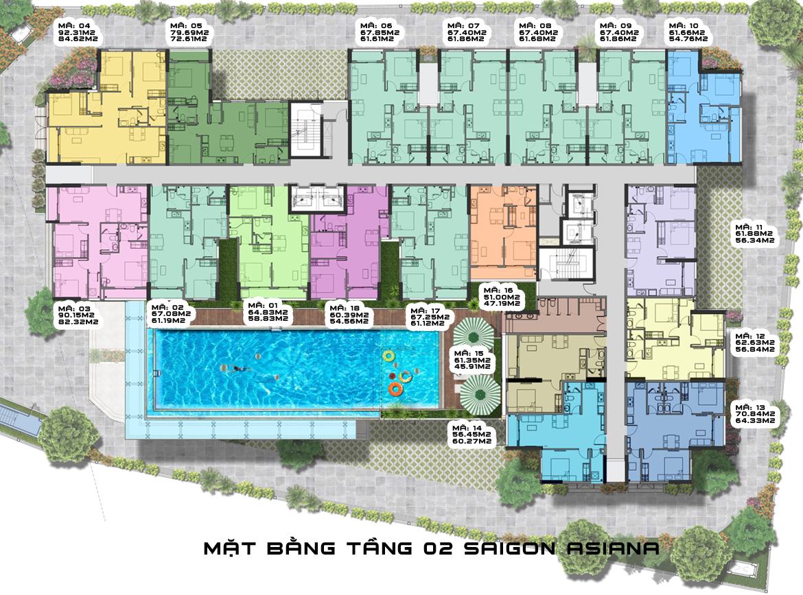 Mặt bằng dự án căn hộ Saigon Asiana quận 6 chuẩn mực hình L để dồn trọng tâm sự thu hút vào khu vực Trung tâm thương mại, hồ bơi ở tầng 1 cũng như những tiện ích khác, căn hộ đường Nguyễn Văn Luông thật sự nổi bậc bởi những đường nét tưởng chừng như đơn giản nhưng vô cùng thanh thoát và mãi đẹp theo thời gian. Gotec Land cố gắng xây dựng thành công dòng thương hiệu Asiana bởi chính lối thiết kế vô cùng chuẩn mực để mang đến những mùa hè ngọt ngào cho thượng đế của mình.