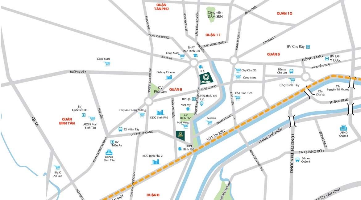 Sở hữu vị trí đắc địa tại trung tâm hành chính quận 6 và là tâm điểm của khu giao thương Sài Gòn Chợ Lớn sầm uất bậc nhất nội thành, Saigon Asiana chắc chắn sẽ mang đến cho bạn một cuộc sống may mắn, sung túc và thịnh vượng ngay trên vùng đất hội tụ tinh hoa của những thương nhân nổi tiếng đất Sài Thành. Bên cạnh đó, dự án nằm trên 2 trục đường chính của quận 6 là Hậu Giang – Nguyễn Văn Luông, liền kề với khu dân cư hiện hữu và có hạ tầng kết nối đồng bộ, liên ranh đến các quận trung tâm của thành phố như 1, 5, 10 chỉ từ 10 -20 phút.