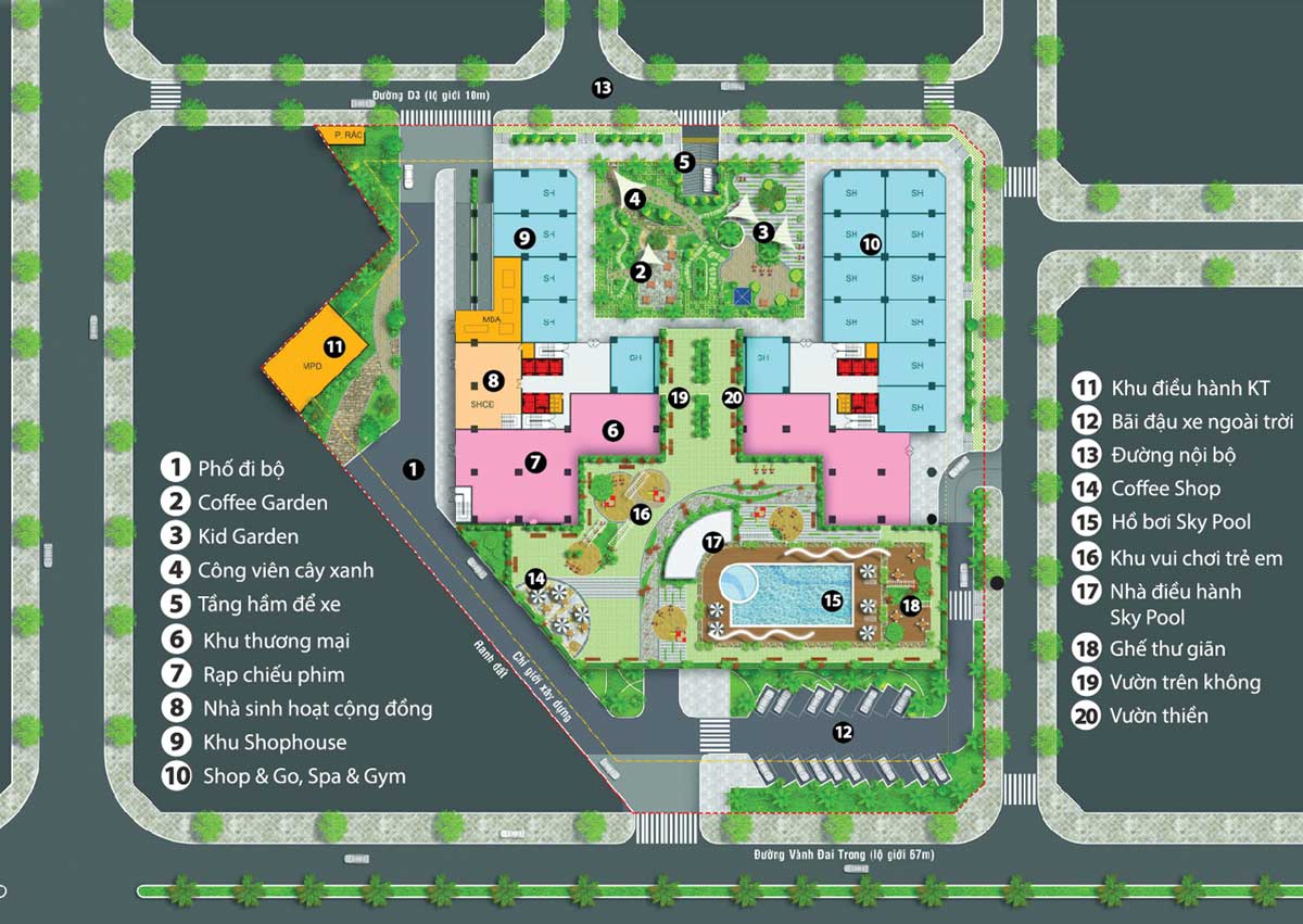 • Khu mua sắm nội khu: địa điểm thu hút khách hàng, giúp giảm thiểu thời gian di chuyển, địa điểm thư giãn cuối tuần