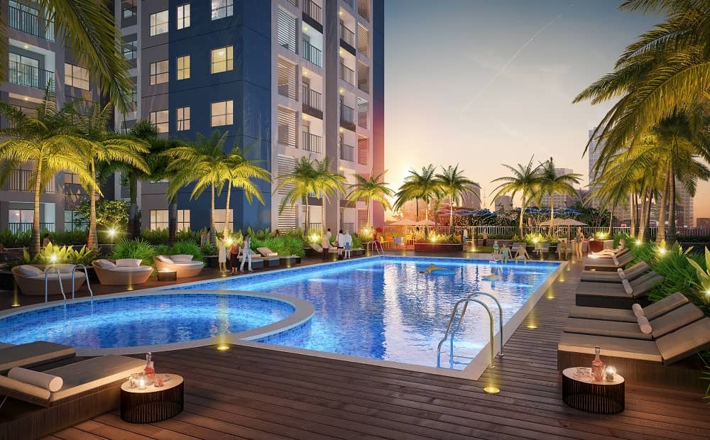 • Bể bơi sang trọng với các giường nằm dọc xung quanh hồ, có phục vụ nước,rượu và đồ ăn. Thiết kế hồ Skypool tầng 2 với dành cho người lớn và trẻ con