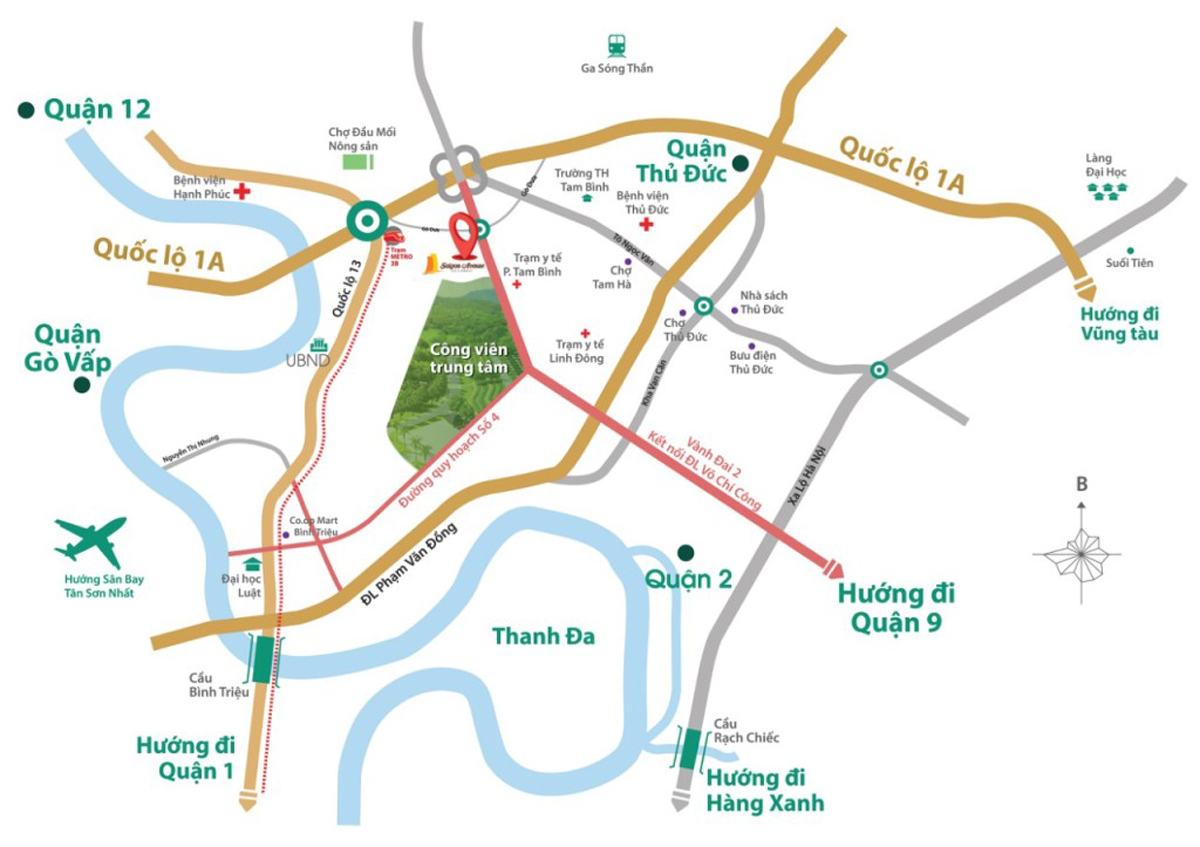 • Vị trí :   tọa lạc trên trục đường Vành Đai mở rộng 63m, thuộc khu phố 4, Tam Bình, quận Thủ đức.