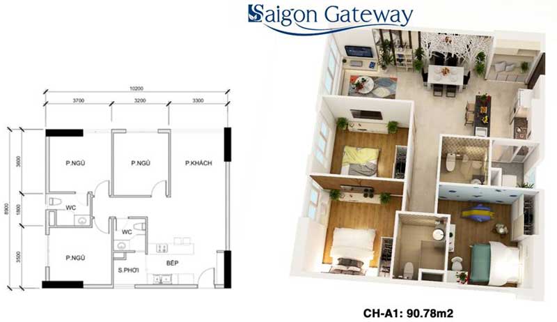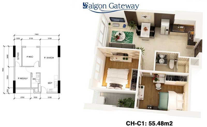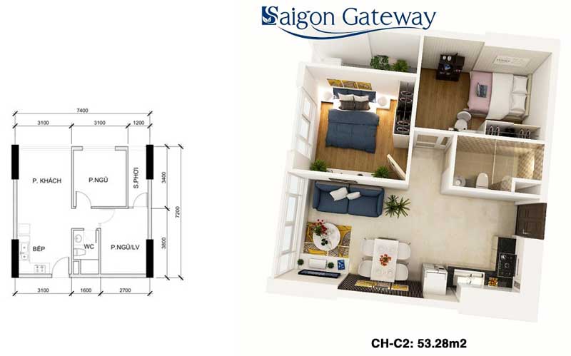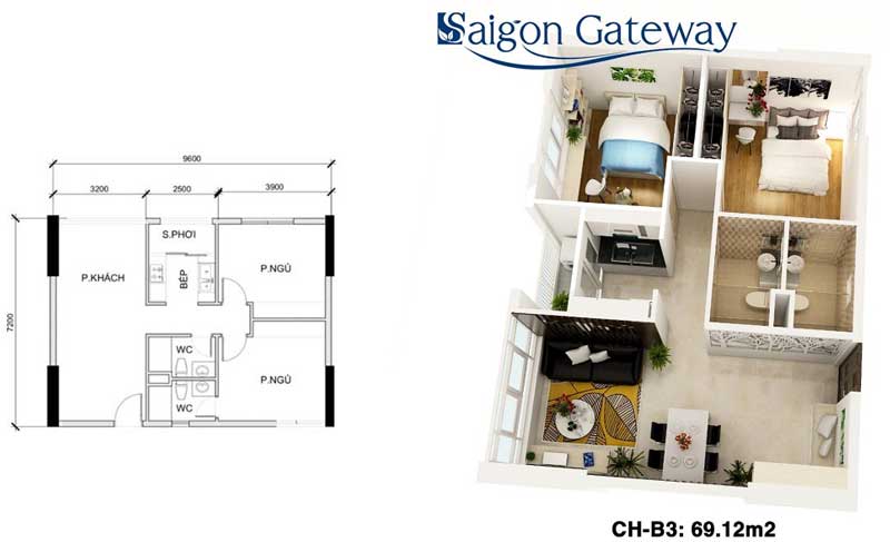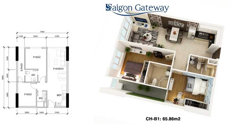 Dự án Saigon Gateway sẽ gồm 2 tháp cao 25 tầng, trong đó có 1 tầng hầm để xe, 1 tầng shophouse, còn lại 23 tầng để ở (gồm 926 căn hộ và có 1 tầng dành riêng cho căn hộ penthouse). Diện tích căn hộ 2-3 phòng ngủ, dao động trong khoảng từ 53.28m2 – 55.48m2 – 65.86m2 – 69.12m2 – 90.78m2