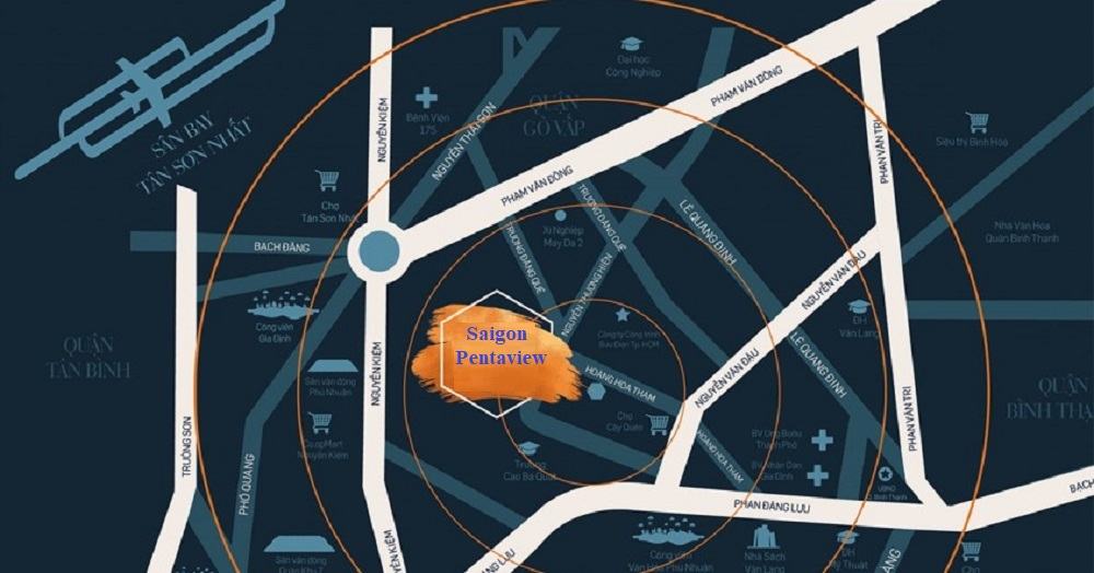 Saigon Pentaview có vị trí tọa lạc tại số 201 Hoàng Hoa Thám, Phường 6, Quận Bình Thạnh. Từ nơi đây, cư dân sẽ nhanh chóng kết nối với các khu vực lân cận, trung tâm thành phố cũng như hàng loạt tiện ích dịch vụ hiện hữu.