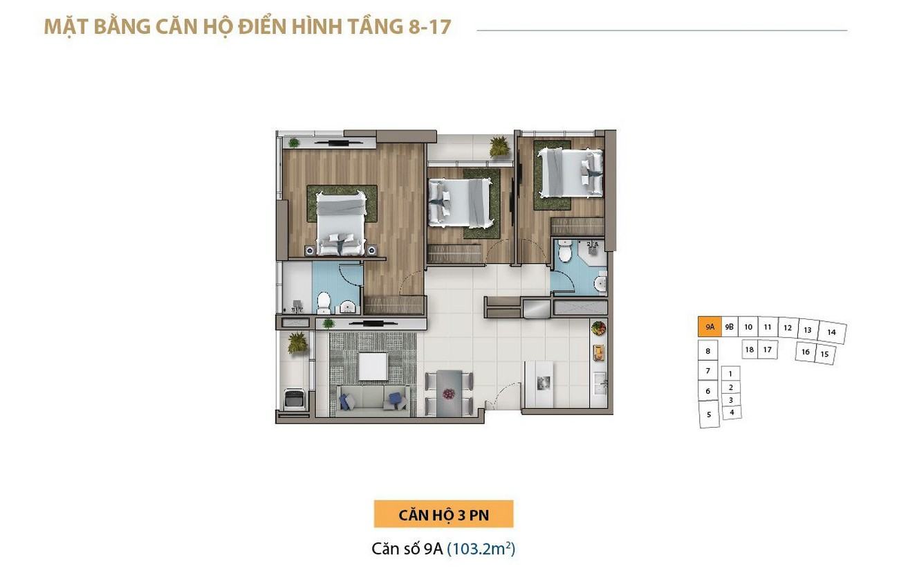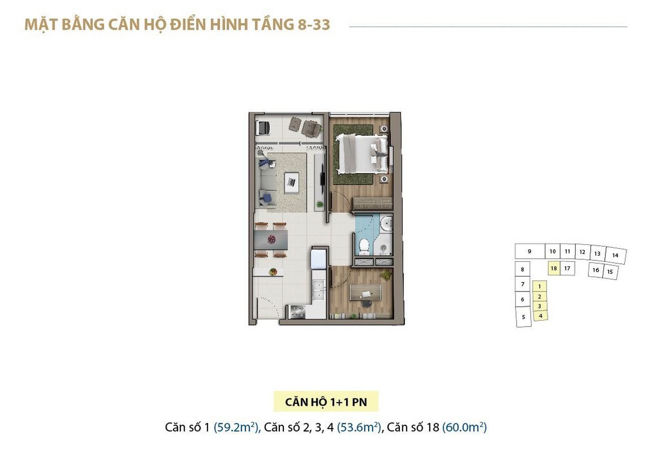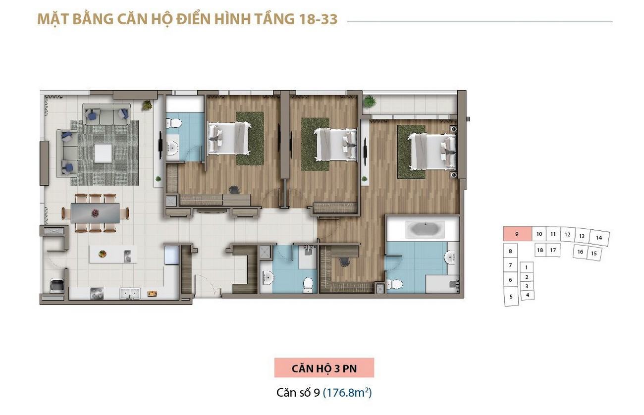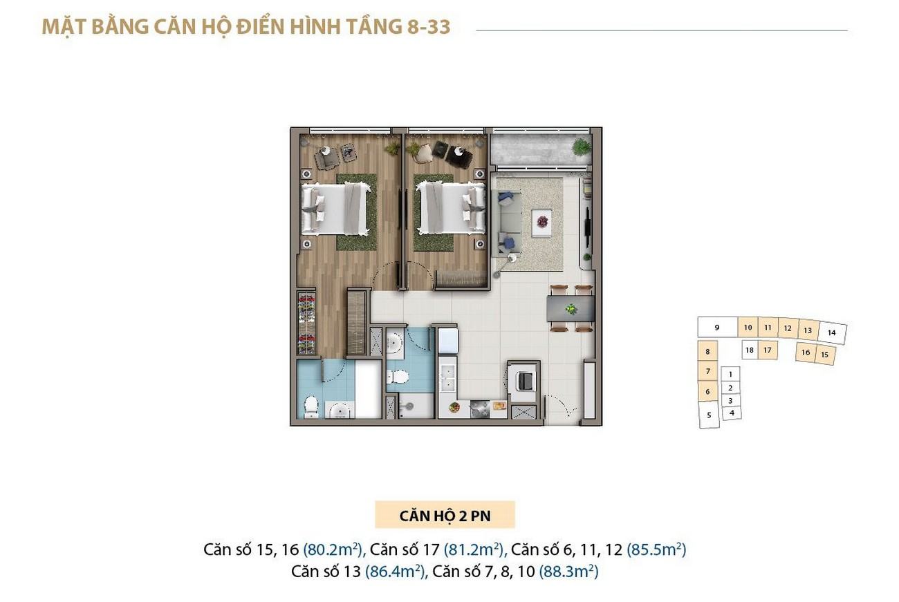 • Từ tầng 8 – 33: Căn hộ cao cấp
