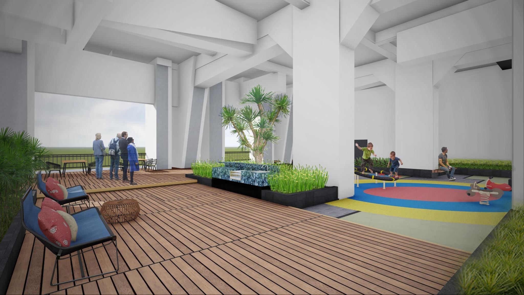 Khối để thương mại : Tầng 1 và tầng 2 (Retail Center) và Tầng 3 : Tầng tiện tích + Officetel