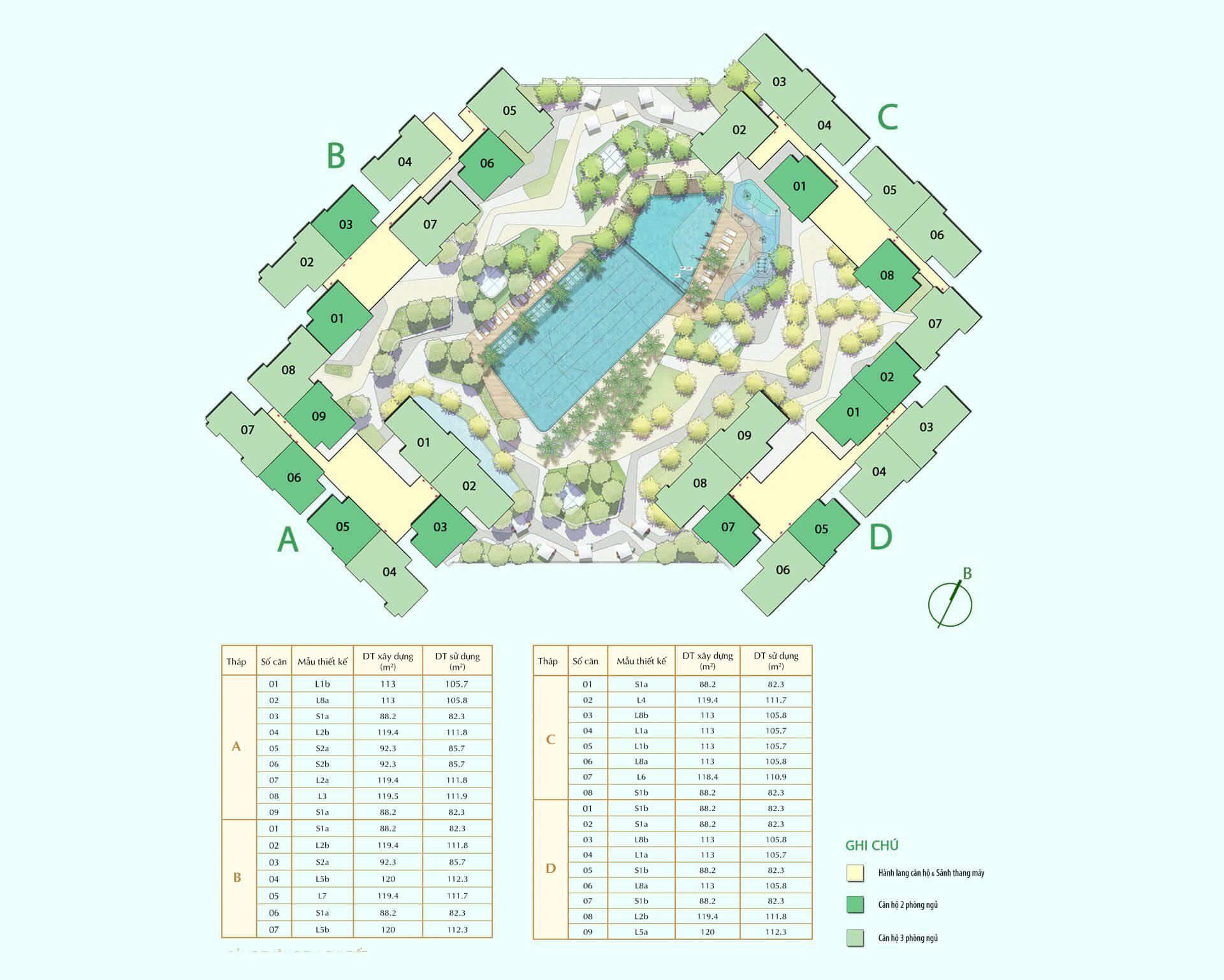 Mặt bằng chi tiết căn hộ Sadora Apartment được chủ đầu tư thiết kế cực kỳ khoa học và thông minh với các căn hộ hầu như không bị chắn view. Hướng nhìn nào cũng rất đẹp và thoáng do khu vưc này được quy hoạch thấp tầng tối đa chỉ 13 tầng. Căn hộ Sadora Apartment là cao nhất với quy mô 4 tháp (tháp A, B, C, D) được bố trí 4 góc, 2 tháp cao 25 tầng và 2 tháp cao 22 tầng bao gồm 605 căn hộ và 16 căn hộ thương mại với 2 tầng hầm chung.