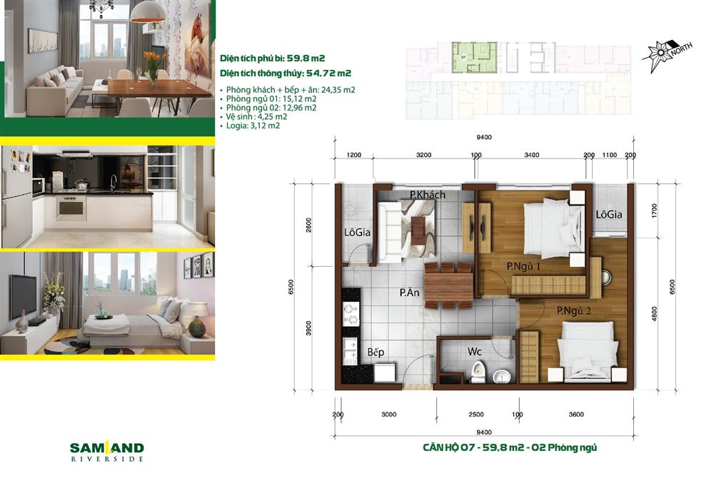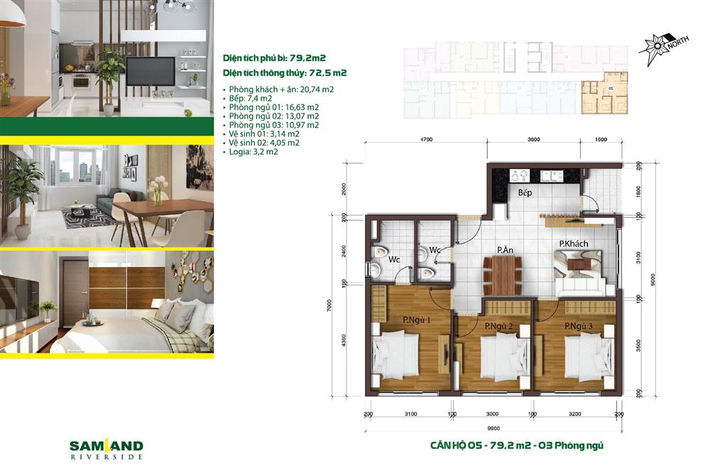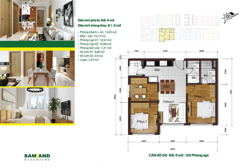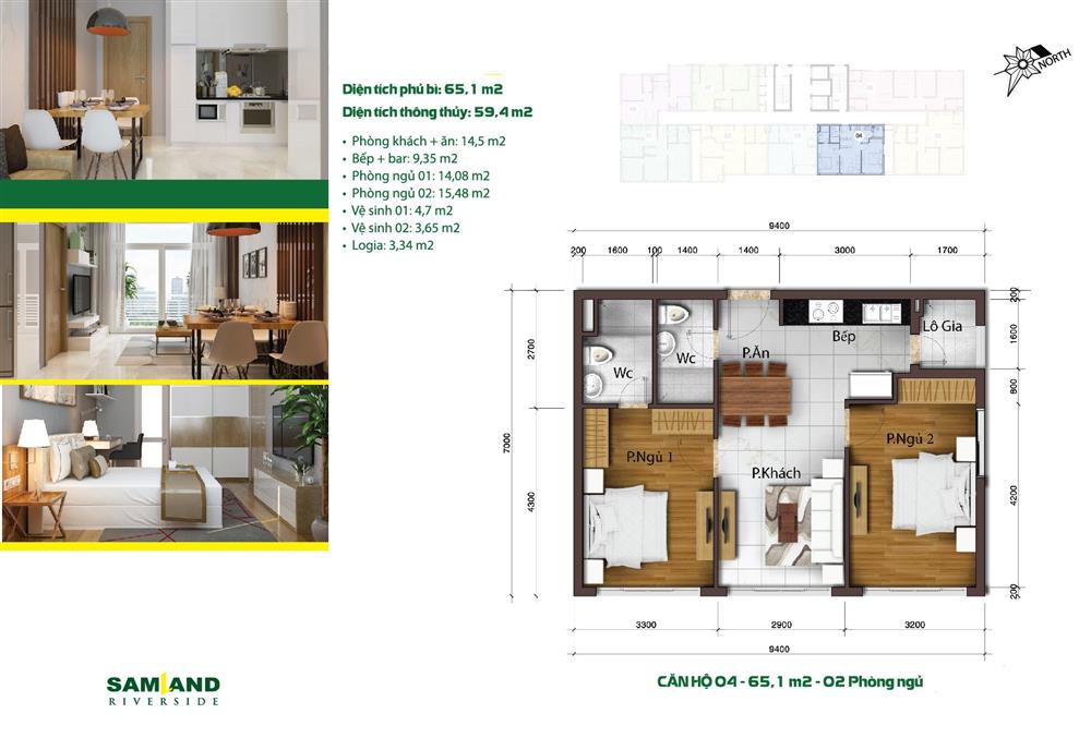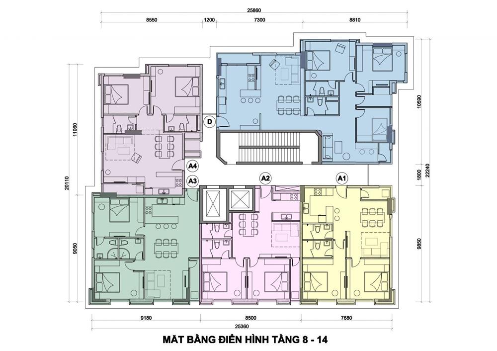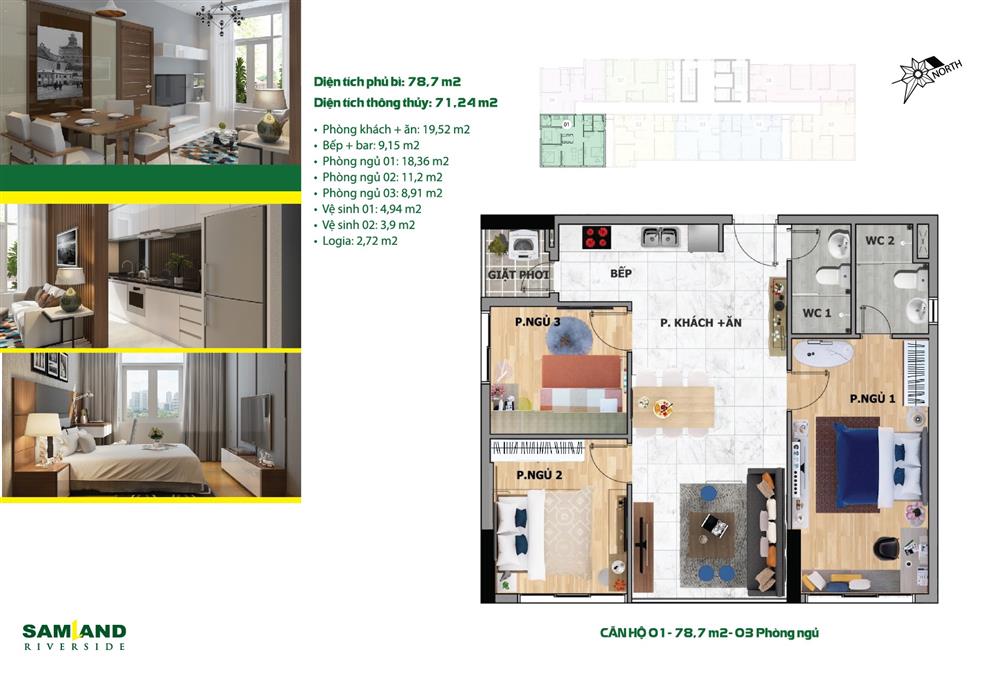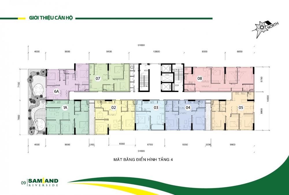 Bố trí các tòa tại dự án Samland Riverside như sau: