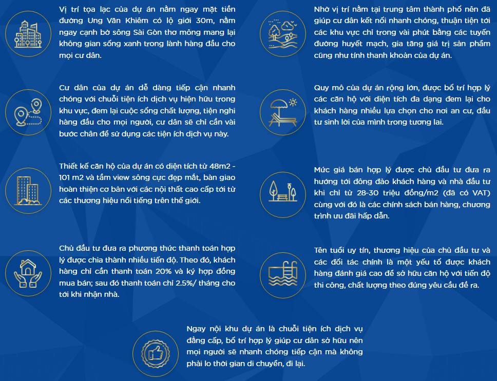 Với lợi thế nằm tại khu vực trung tâm của quận Bình Thạnh nên cư dân của dự án sẽ được thừa hưởng mọi tiện ích dịch vụ cao cấp, hiện hữu trong khu vực xung quanh nhanh chóng nhờ hệ thống hạ tầng giao thông thuận tiện và cơ sở đồng bộ.