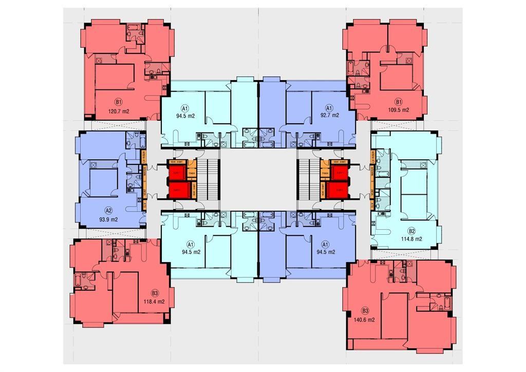 – Từ tầng 6 đến tầng 18 dành để xây dựng các căn hộ cao cấp, với tổng diện tích sàn xây dựng 16.256 m2. Trong đó: