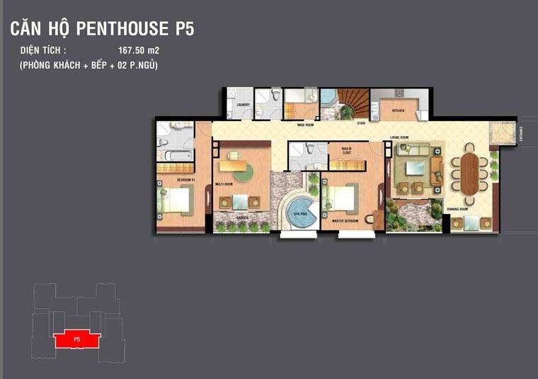 Số tầng: 18 tầng (5 tầng thương mại – dịch vụ, 13 tầng căn hộ) & 2 tầng hầm.